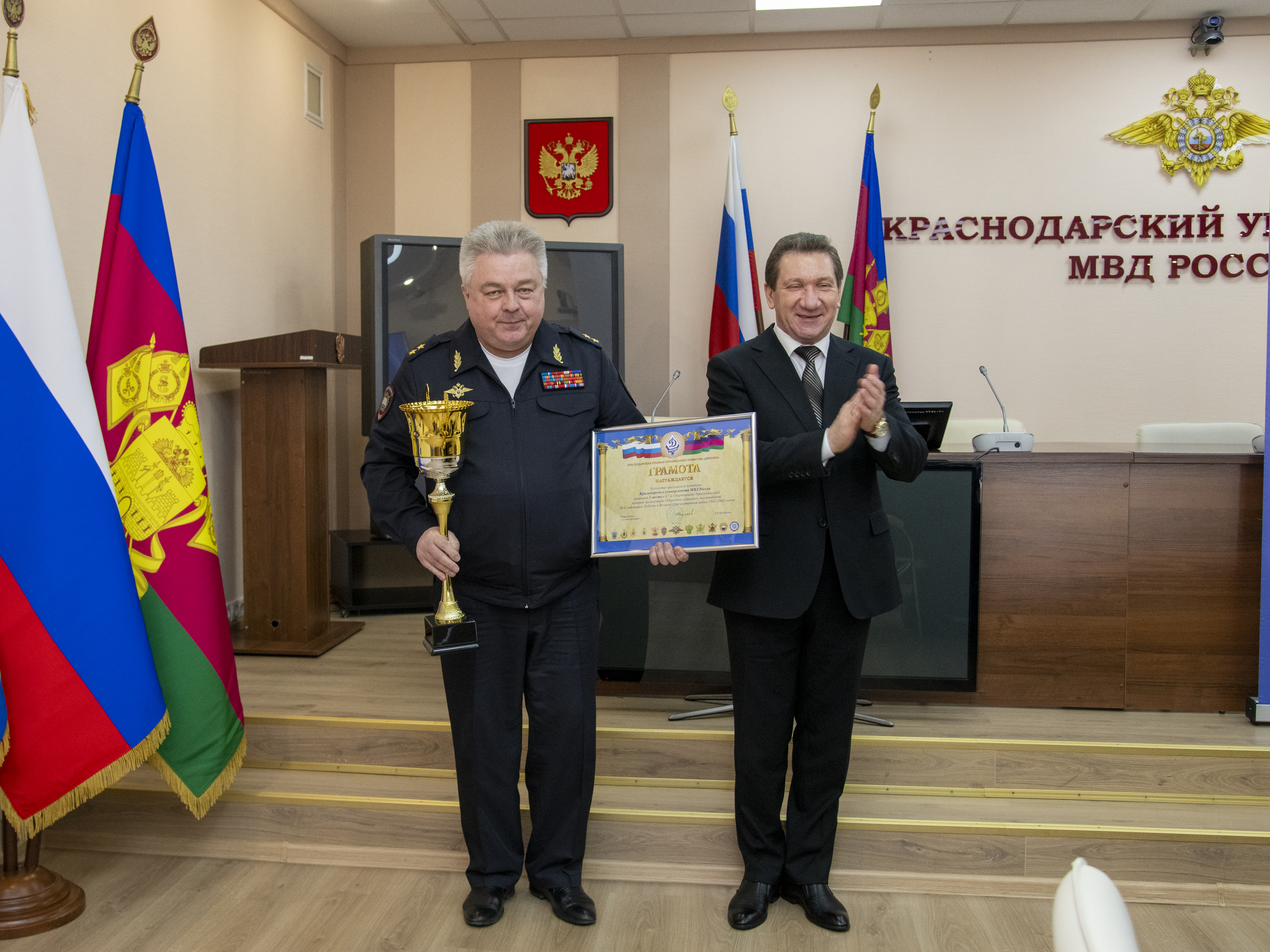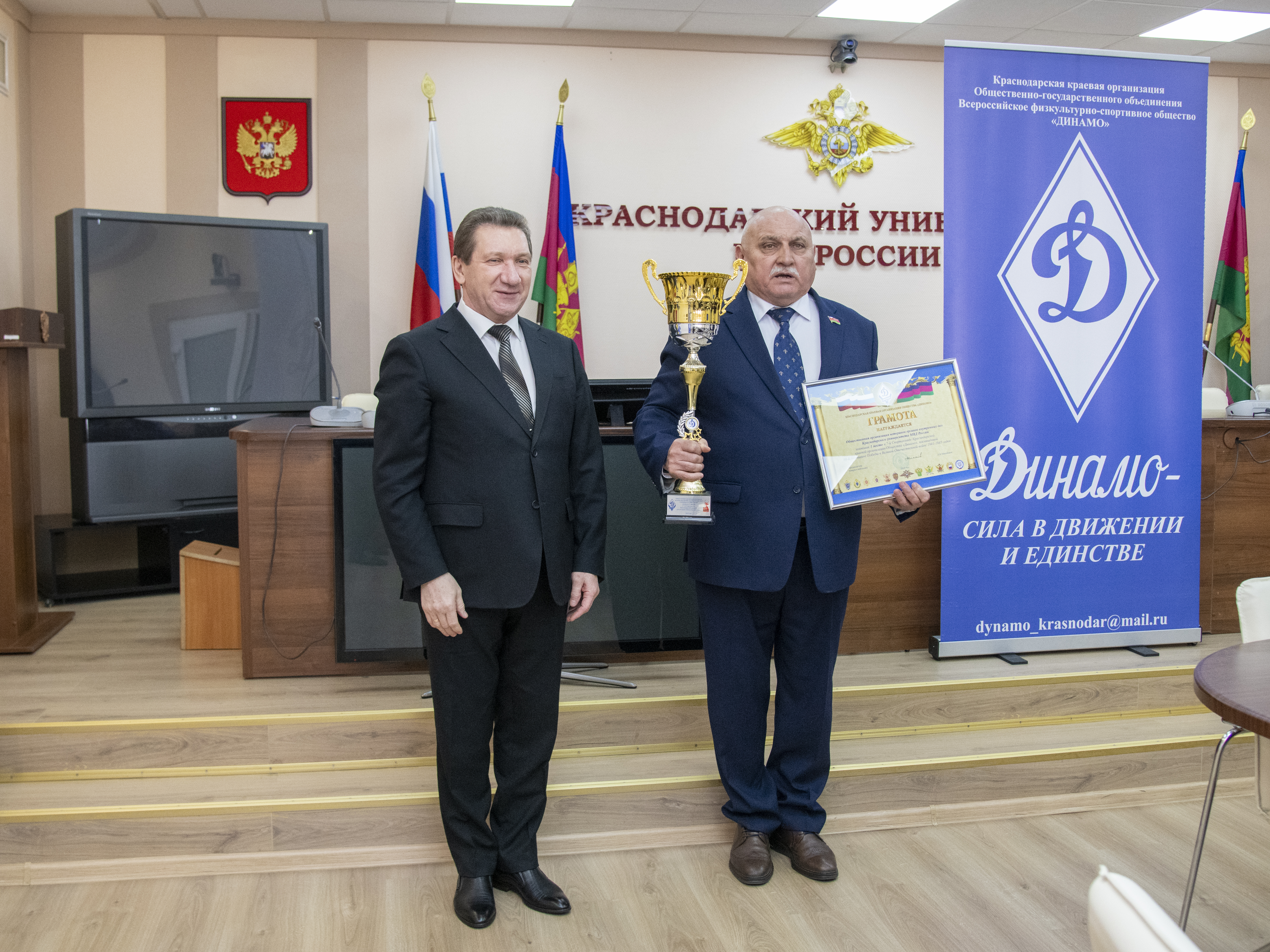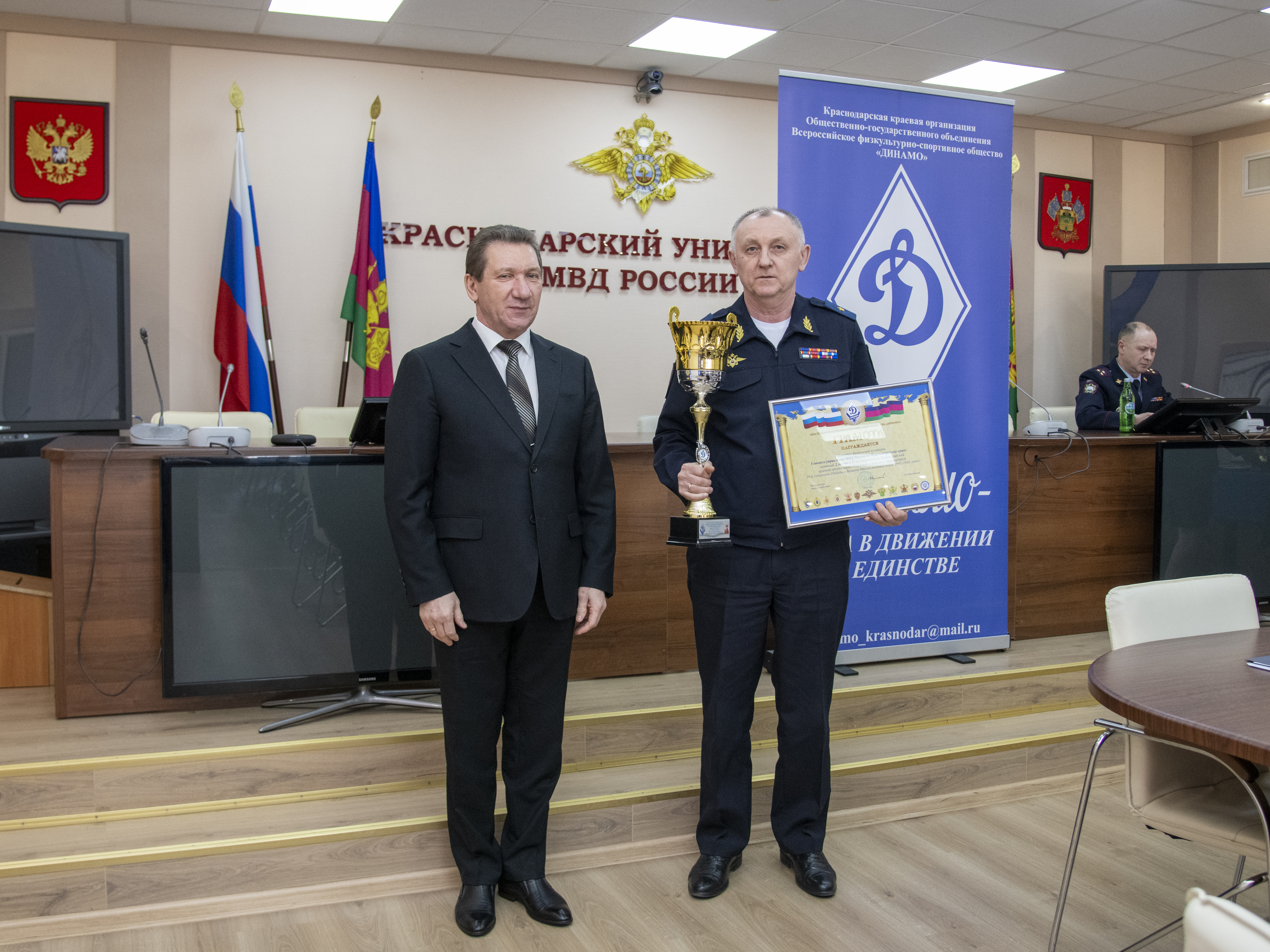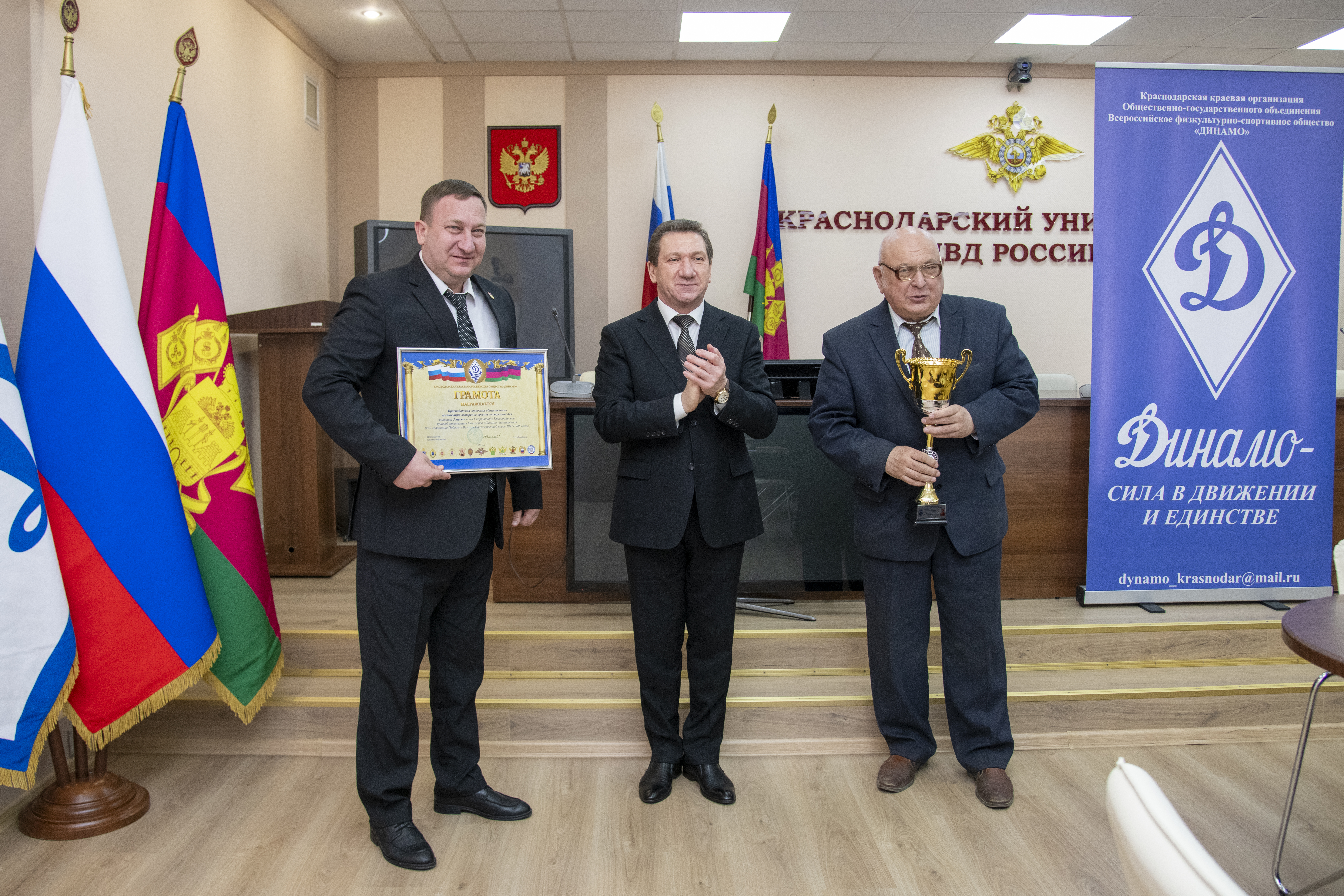 По окончании работы III пленума Совета Краснодарской краевой организации Общества «Динамо» состоялось торжественное награждение победителей и призеров 67-й Спартакиады Краснодарской краевой организации Общества «Динамо» среди коллективов физической культурыорганов безопасности и правопорядка.